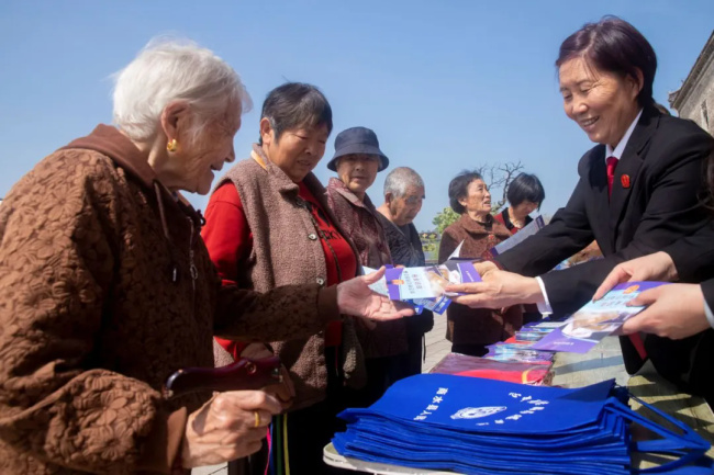 活动现场,法院干警通过设置宣传展板、发放普法资料、现场答疑解惑、以案释法等形式,开展精准普法。针对游客、景区周边商户、当地群众(特别是老年群体)等不同对象,量身设计不同的宣传内容,力求“一类群体一套方案”。