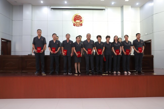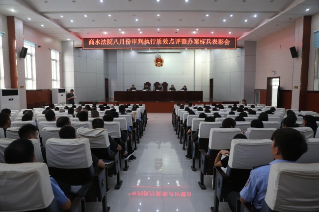商水县纪委派驻商水法院纪检组组长卢岩宣读了《商水县人民法院关于表彰8月份办案标兵的决定》,对杜五行、赵丽等16名办案标兵进行了表彰;院领导向办案标兵颁发了荣誉证书;党组成员、副院长洪斌宣读了《商水县人民法院8月份执行质效通报》;党组成员徐迎生宣读了《商水县人民法院8月份审判质效通报》。通报显示,商水法院1—8月份诉讼结案率93.87%,在全省164个基层法院中指标排名第一;1—8月份执行案件实际执结率67.74%,在全省164个基层法院中指标排名第六。